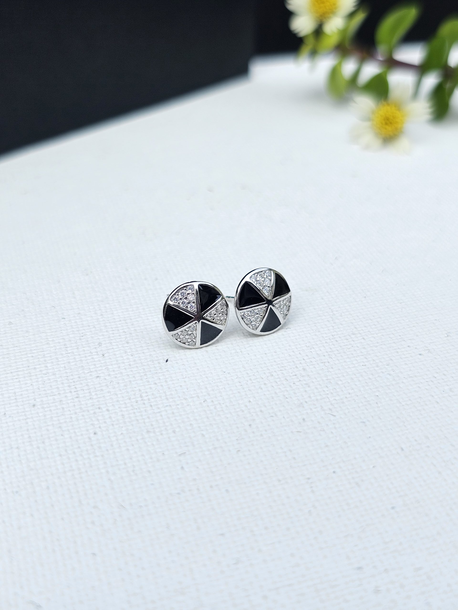 A perfect blend of classic black enamel and shimmering CZ stones — these studs define modern minimalism.