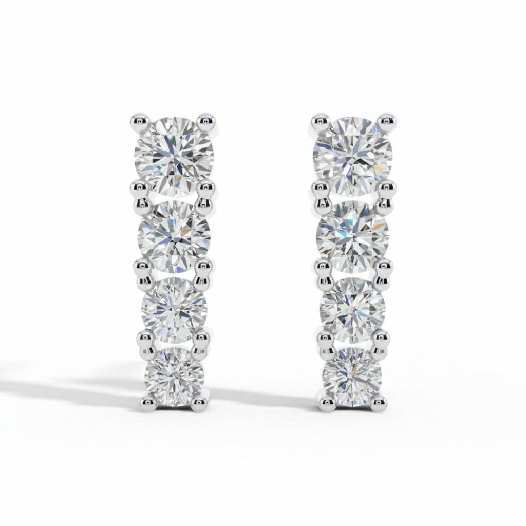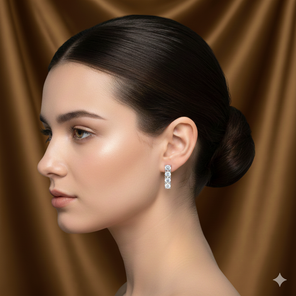 These ear studs feature four white zircons arranged in a graduated design from large to small. Meticulously crafted, they create a cascading sparkle that adds elegance and sophistication, perfect for elevating everyday style or adding a refined touch to special occasions.