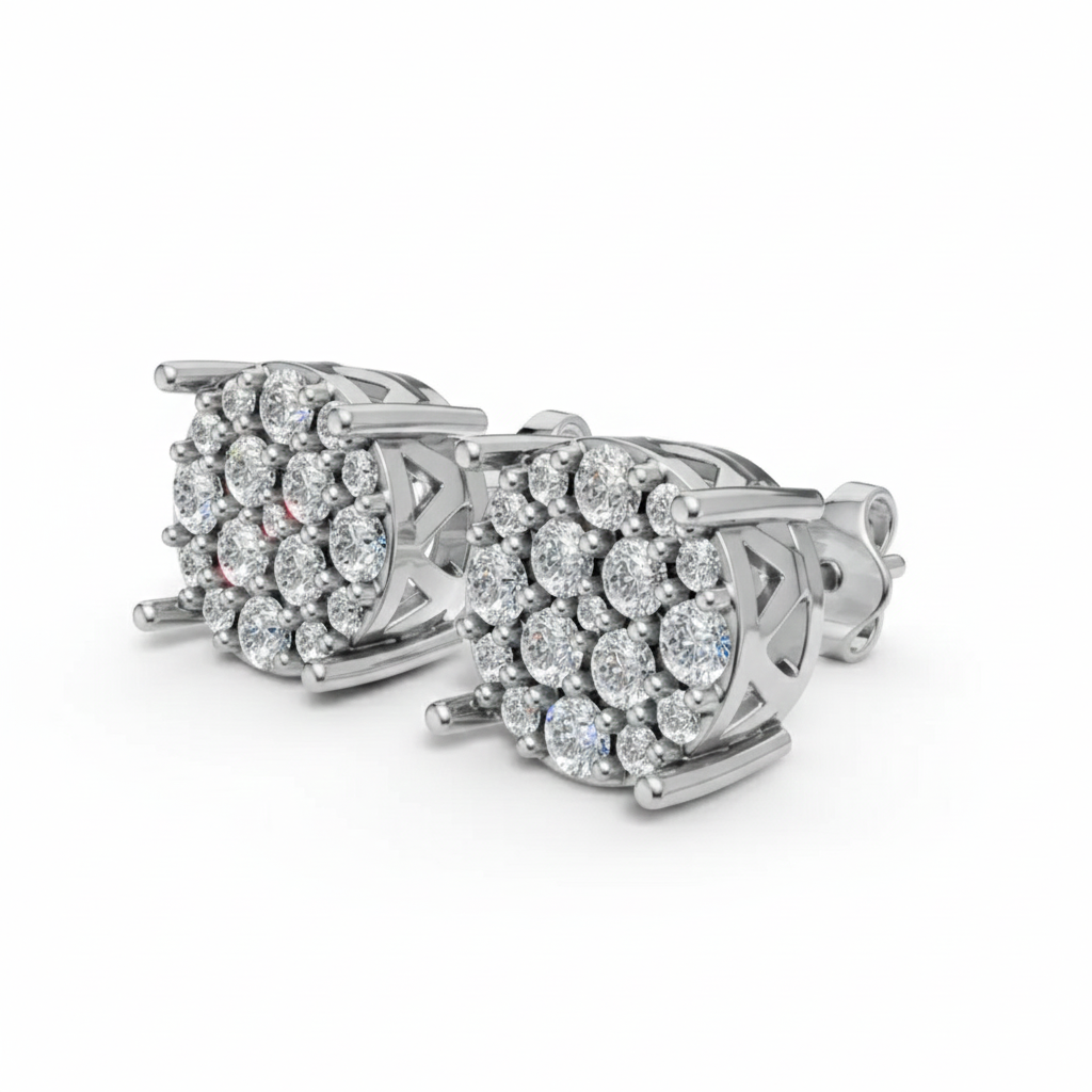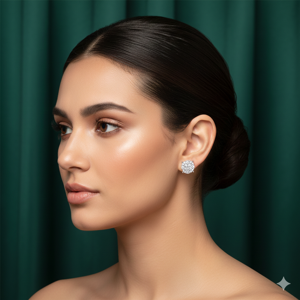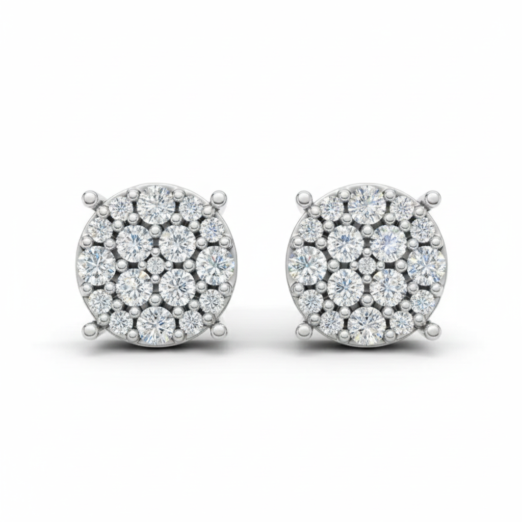 These round pavé studs radiate timeless elegance, with stones meticulously set to capture light from every angle. Classic yet modern, they are the perfect everyday essentials that transition seamlessly from casual chic to evening sophistication.
