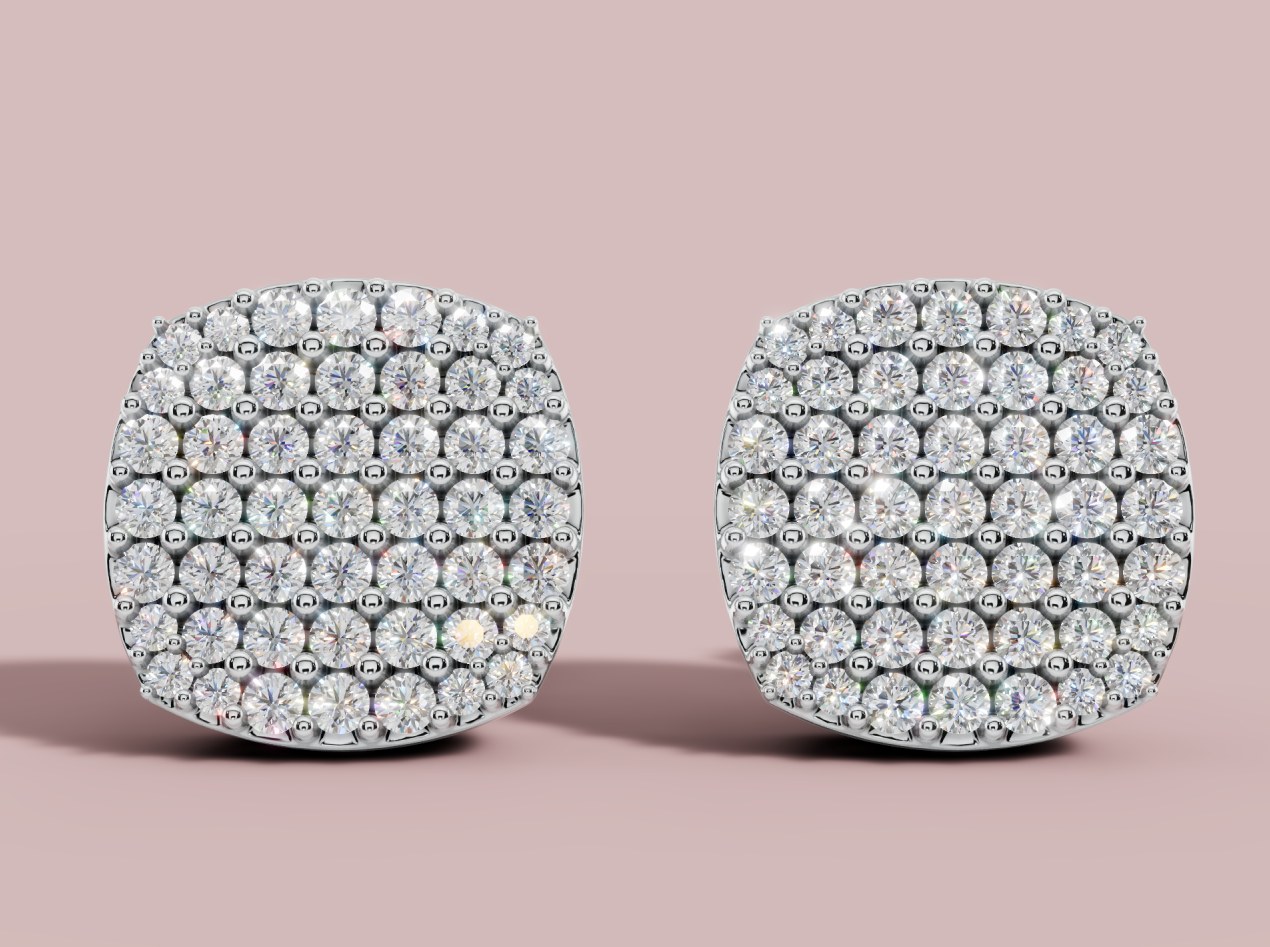 These cushion pavé studs combine soft curves with radiant sparkle. Meticulously set stones create a timeless design that balances elegance and brilliance, making them a versatile pair for both everyday wear and special occasions.