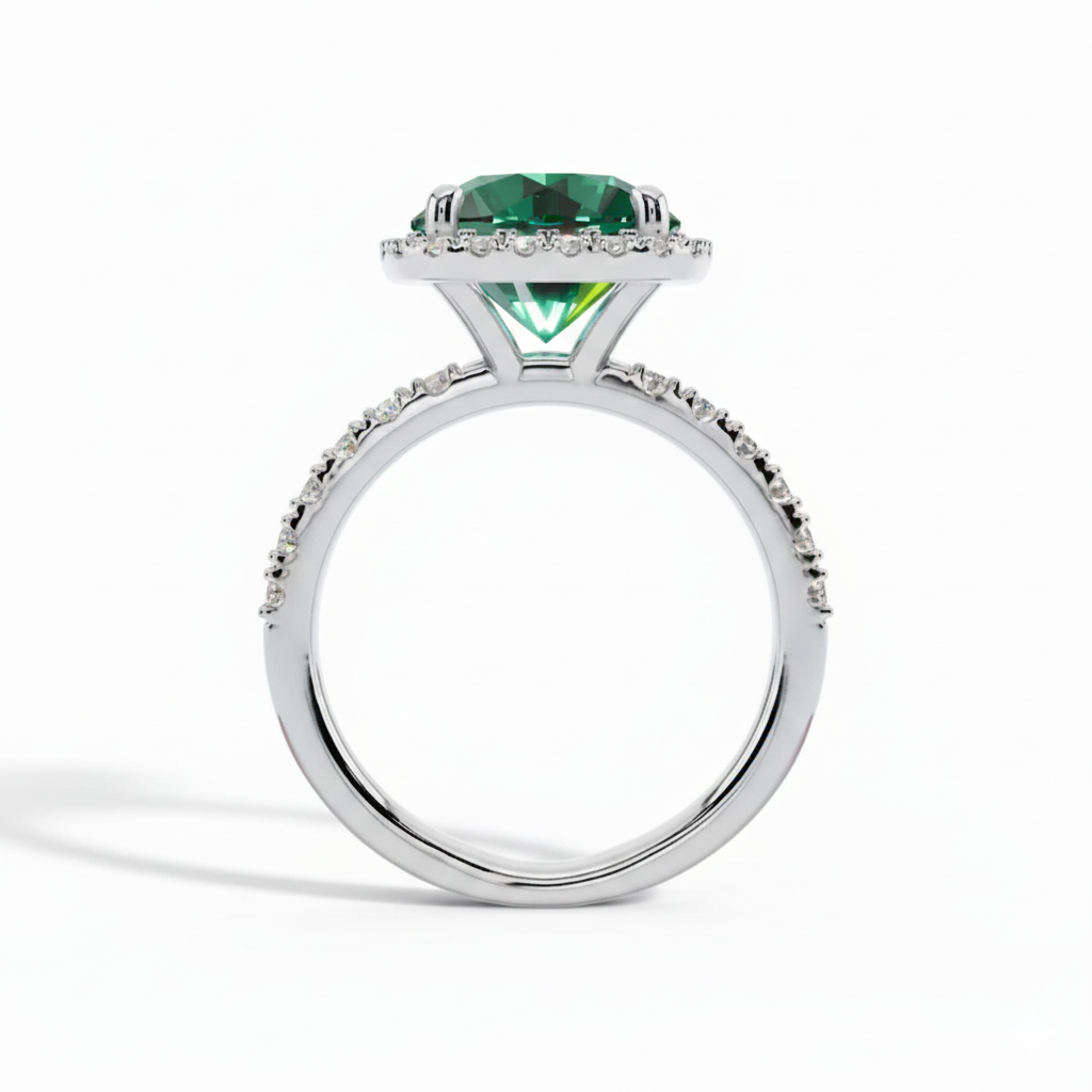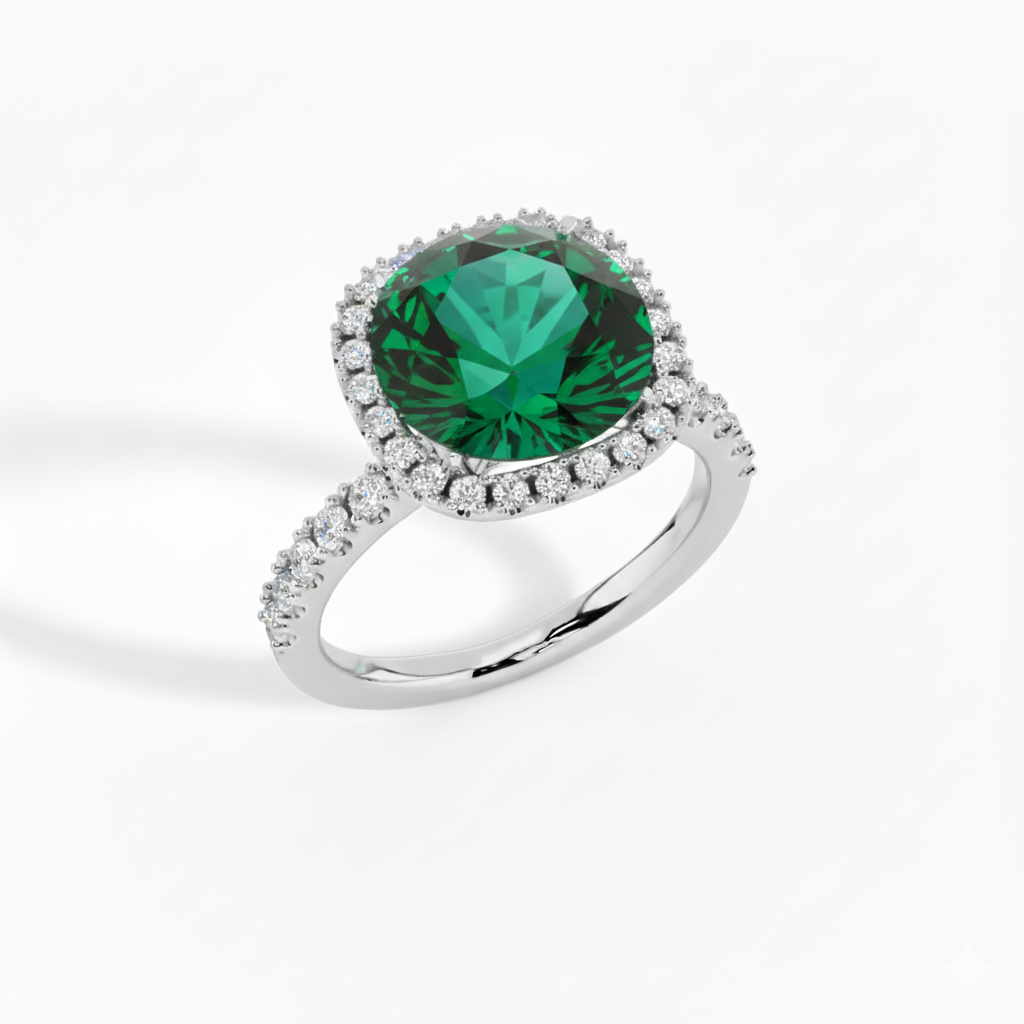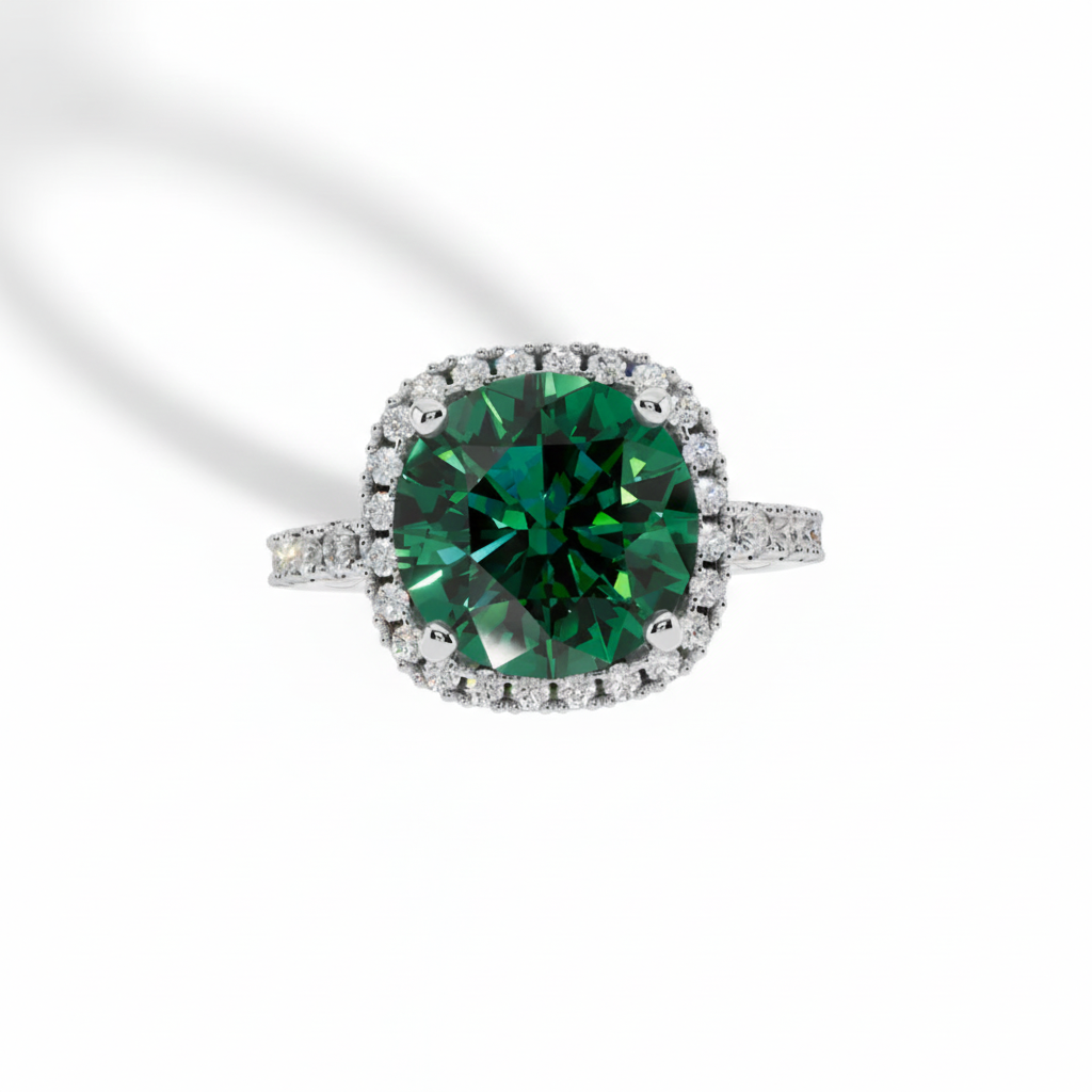 The Emerald Reign Ring: Adorn your hand with the regal beauty of this exquisite halo ring from Sterlish Jewel. Featuring a rich, deep emerald green cushion-cut gemstone that captures the intensity of a genuine emerald. The captivating center stone is framed by a glittering halo and sparkling pave-set sterling silver band. Crafted for significant visual impact, this piece is perfect as a show-stopping cocktail ring, a meaningful May birthstone gift, or a luxurious emerald look anniversary ring.
