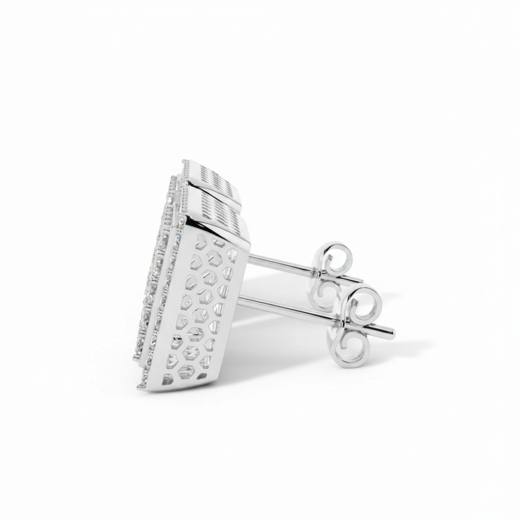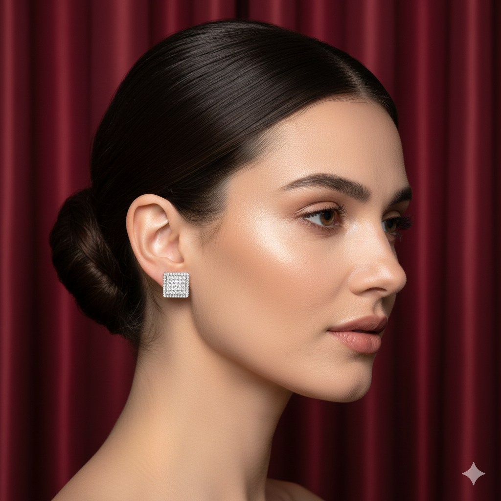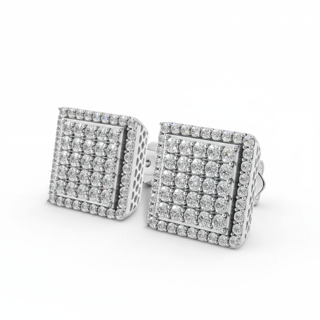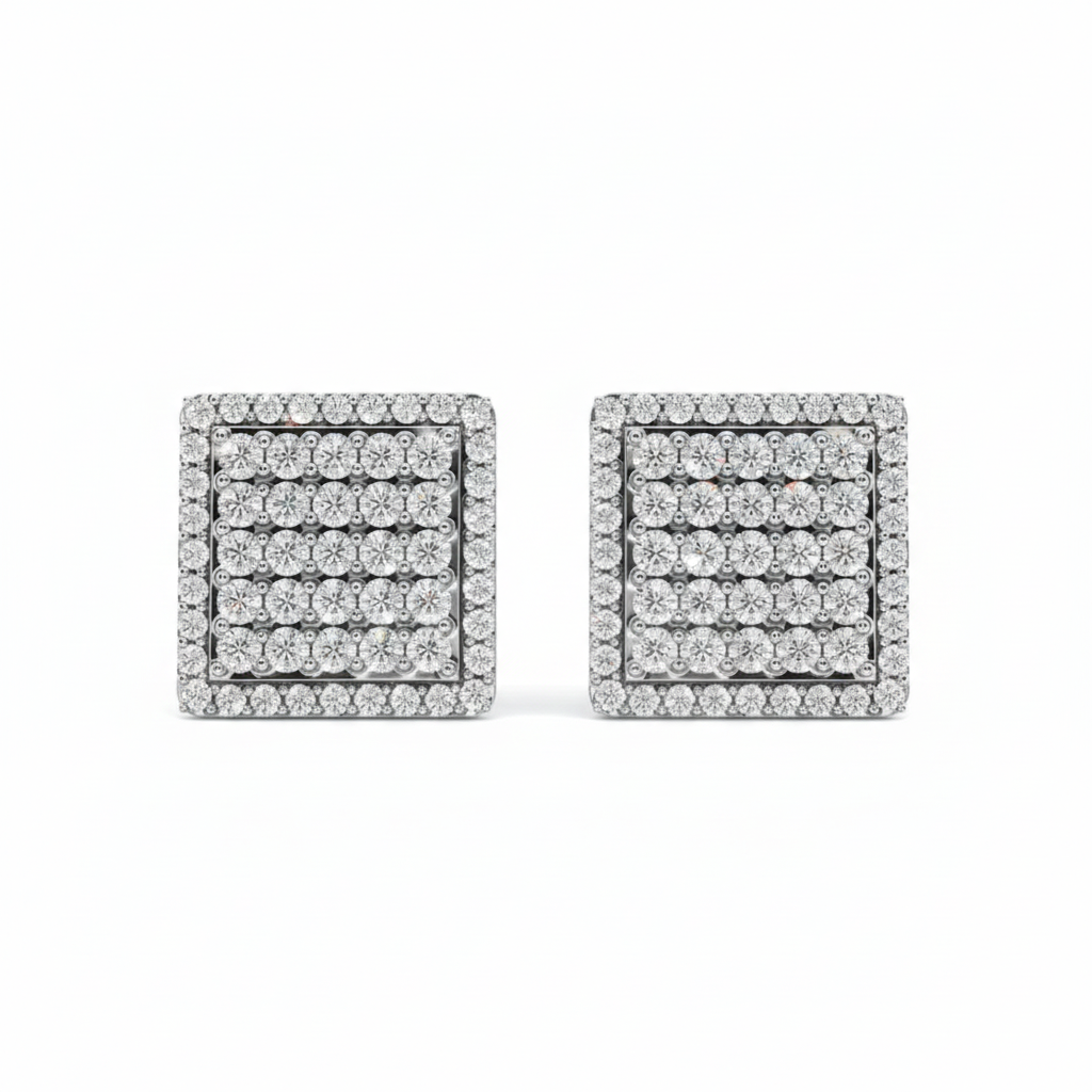 These square studs shimmer with precisely set stones, combining modern geometry with timeless elegance. Bold yet refined, they’re the perfect pair to elevate everyday style with brilliance and sophistication.
