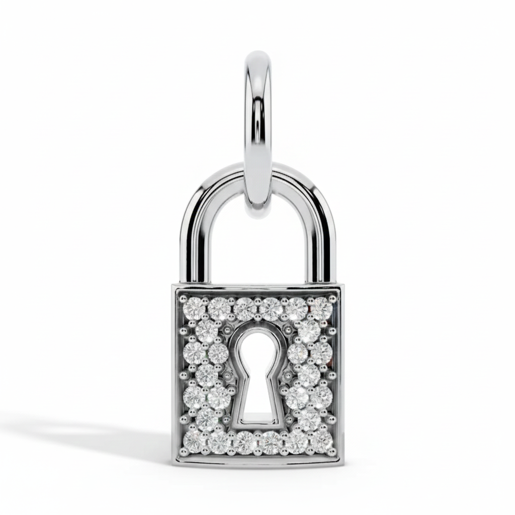 Keep your style locked in elegance with this charming lock pendant. Symbolizing security, mystery, and personal strength, it’s a statement accessory that adds meaning and a touch of sophistication to any look.