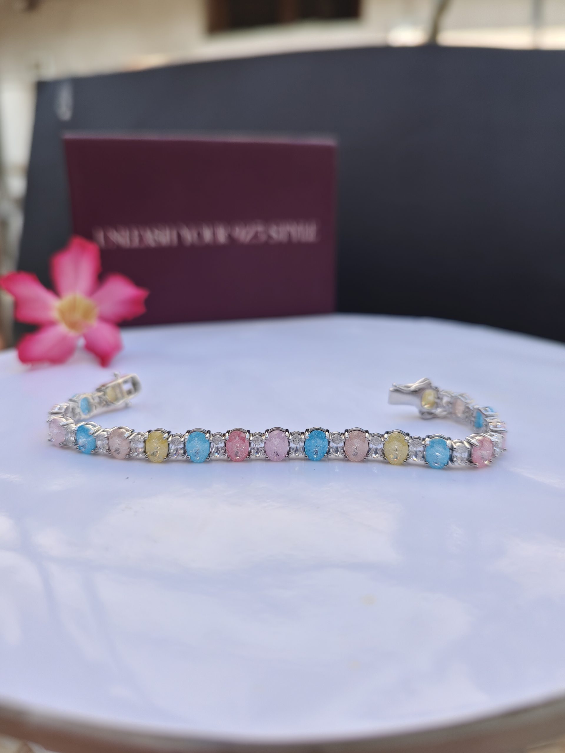 This pastel gemstone bracelet captures elegance in every hue โ€” blue, pink, yellow, and white shimmer in harmony ๐ŸŒˆ