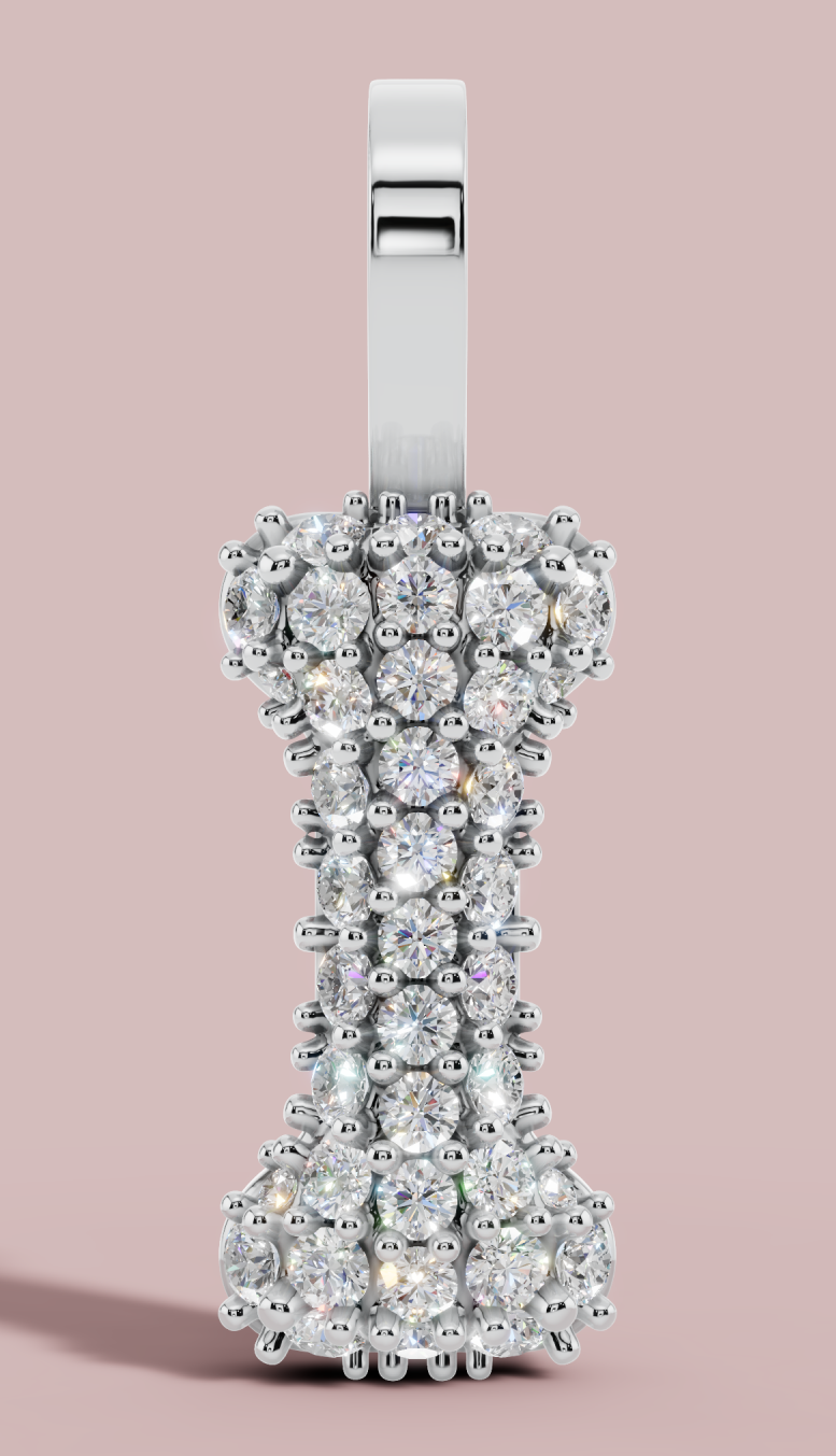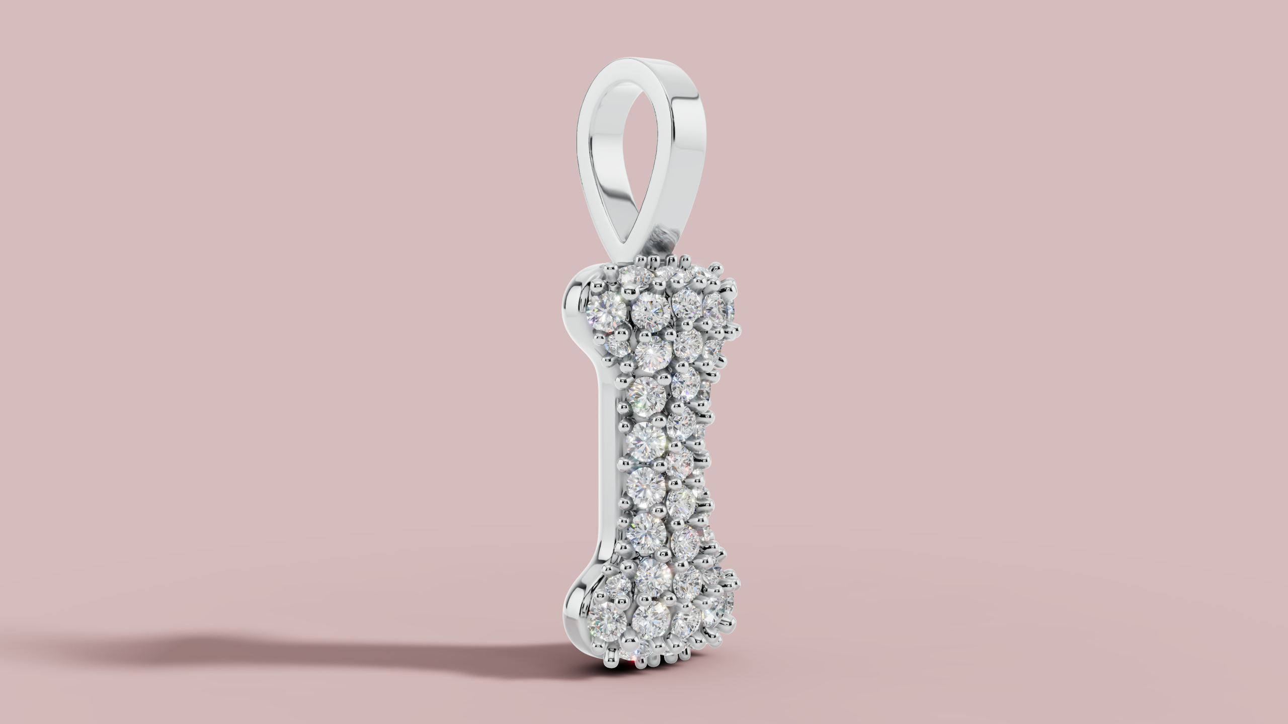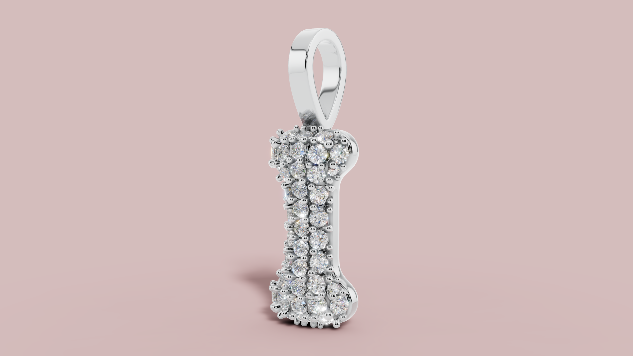 Playful yet luxurious, this bone pendant sparkles with a shimmering pavé setting. A charming piece for dog lovers, it blends whimsy with elegance, making it a unique expression of love and style.