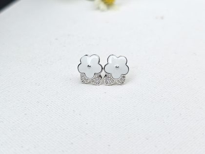 Add a touch of delicate charm to your look with these beautiful flower-shaped stud earrings. Featuring smooth, polished white enamel petals and a subtle base of sparkling pavé stones, they offer a fresh and feminine elegance. Perfect for everyday wear, these earrings bring a hint of nature-inspired beauty to any style.