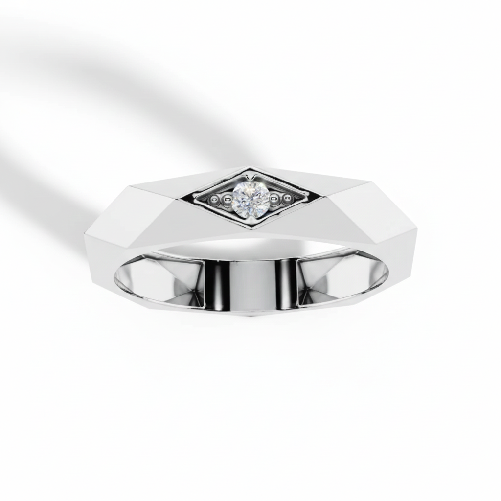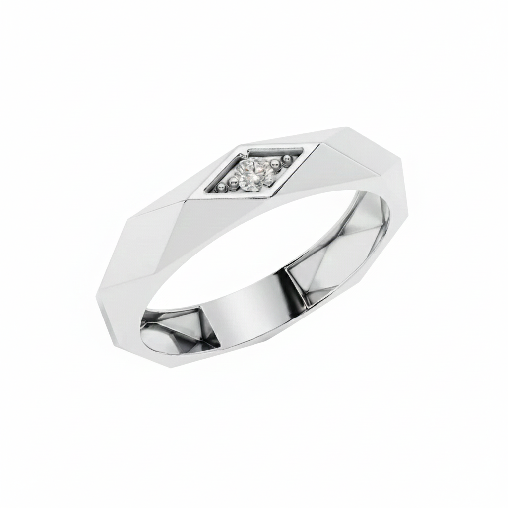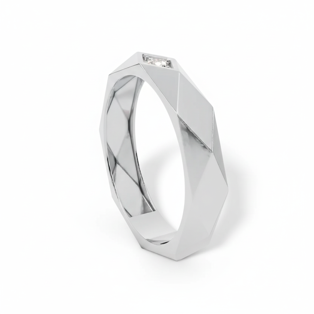 Elevate your presence with architectural precision.The Vector Band is more than an accessory; it is a “Power Ring” designed for the contemporary man. Crafted from premium hallmarked 925 sterling silver, this ring features a striking geometric inner pattern and a bold, raised center solitaire that catches the light from every angle.